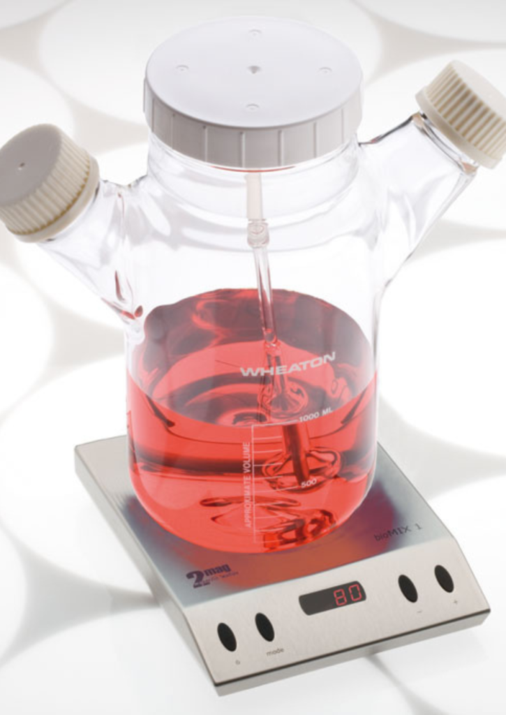 Price optimized maintenance-free 2mag magnetic stirrer with 1 stirring point, large surface, space saving, also suitable for viscous culture media.
