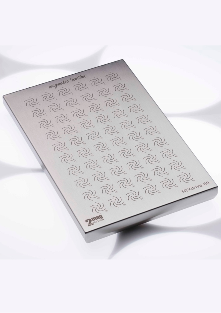 Ultra flat, wear-free 2mag magnetic stirrer with 60 (6×10) stirring positions, suitable for 60 testing tubes, ideal for integration.