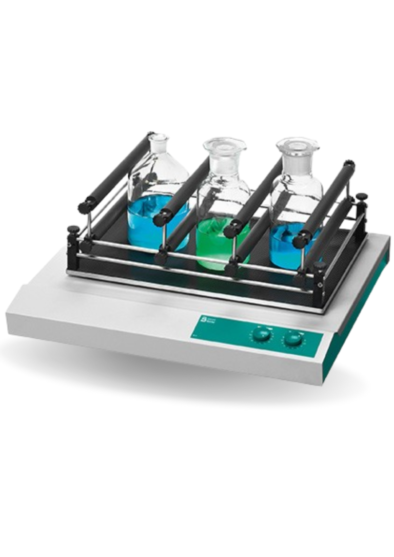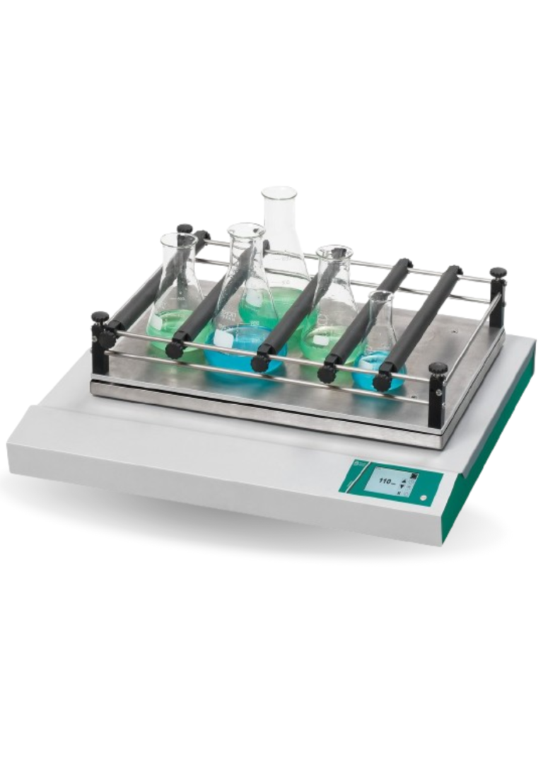 The universal shakers are available with orbital movement (SM 30 A, SM 30 AT), horizontal to-and-fro movement (SM 30 B) or switchable movement (orbital or to-and-fro; SM 30 C). You can choose between an analog version with knobs for setting speed and time and a control version with programmable control and digital display.
